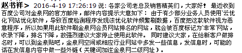 涓銆佹垜浠殏涓斾笉璁洪偖浠剁湡浼紝鎴戜滑鍏堢湅鐪嬮噾娉夌綉緗戠珯鐨凷EO鐘跺喌錛岄鍏堟垜浠厛鎵撳紑閲戣瀺緗戞牴鍩熷悕jqw.com鍙戠幇錛岃緗戠珯騫舵病鏈夊皢鏍瑰煙鍚嶅仛301閲嶅畾鍚戝埌www.jqw.com錛岃繖涓鐐逛細瀵艱嚧鏉冮噸涓嶉泦涓紝杈冧負鍒嗘暎緗戠珯鏉冮噸銆?BR>