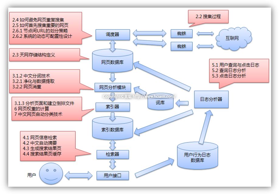鍦ㄤ簰鑱旂綉涓紝URL鏄瘡涓〉闈㈢殑鍏ュ彛鍦板潃錛屸濊湗铔涚▼搴忊濋氳繃榪欎簺URL鍒楄〃鎶撳彇鍒伴〉闈㈢殑錛屸滆湗铔涒濅笉鏂殑浠庤繖浜涢〉闈腑鑾峰彇URL璧勬簮鍙婂瓨鍌ㄩ〉闈紝騫跺姞鍏RL鍒楄〃錛屽姝や笉鏂殑寰幆錛屾悳绱㈠紩鎿庡氨鍙互浠庝簰鑱旂綉涓幏鍙栧埌瓚沖鐨勯〉闈€傚綋鐢ㄦ埛鍦ㄦ悳绱㈠紩鎿庝腑媯绱俊鎭椂錛屾悳绱㈠紩鎿庨鍏堟淳鍑衡滆湗铔涒濅粠绱㈠紩鍖哄嚭鍙戯紝鍦ㄤ簰鑱旂綉涓姄鍙栫綉欏碉紝鐒跺悗鏀懼埌涓存椂搴撲腑錛屽湪涓存椂搴撲腑緗戠珯鑻ヨ繕鏈夊叾浠栫殑閾炬帴錛屸滆湗铔涒濅細欏虹潃閾炬帴榪涘叆涓嬩竴涓〉闈紝鍐嶆妸榪欎釜欏甸潰鎶撳彇鍒頒復鏃跺簱涓紝榪欐牱涓嶆柇寰幆銆備絾涓存椂搴撲腑鐨勭綉欏典俊鎭笉絎﹀悎瑙勫垯錛屽氨琚竻闄ゆ帀錛涜嫢絎﹀悎瑙勫垯錛屽氨鏀懼叆绱㈠紩鍖恒傚啀閫氳繃鍒嗙被銆佹暣鐞嗐佹帓搴忕瓑榪囩▼錛屽皢絎﹀悎瑙勫垯鐨勭綉欏墊斁鍒頒富绱㈠紩鍖猴紝涔熷氨鏄敤鎴風洿鎺ョ湅鍒版煡璇㈢殑緇撴灉銆?BR>